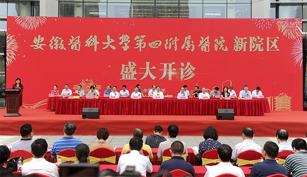 8月26日上午,我校第四附属医院于新院区广场举行盛大的开诊典礼,标志着安医大四附院新院区正式开诊运营。省人大常委会副主任、省总工会主席李明,省委教育工委书记钱桂仑、省发展与改革委员会副主任杨明、省科技厅副厅长陆秀宗、省财政厅副厅长朱艾勇、合肥市人民政府副市长吴春梅、省卫生和计划生育委员副巡视员王宇铭、省食品药品监督管理局副局长杨士友、省医保中心主任汤惟健、省机构编制委员会事业机构编制处处长魏建国、合肥市新站区管委会副主任刘正义、中国工商银行安徽省分行副行长赵洪亚、中国农业银行安徽省分行副行长汪晓健、中国建设银行安徽省分行副行长王文兵、交通银行安徽省分行副行长陈洪,校领导李俊、曹云霞、刘群英、朱启星、常业军、余永强、肖圣龙等出席本次开诊典礼。