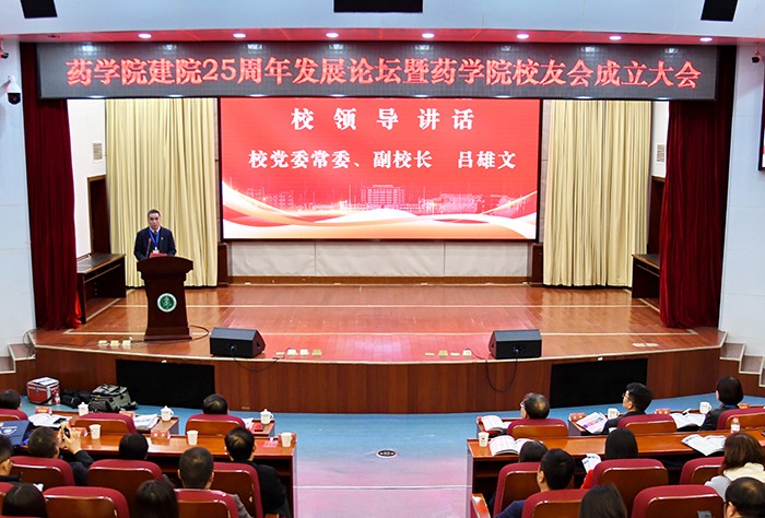 吕雄文在讲话中表示,校友是学校的历史和名片,是学校的宝贵的财富,更是学校事业发展最可信赖的力量。药学院在建院25周年之际成立校友会,是学院办学历史中具有里程碑意义的一件大事,更是惠及全体药学校友的一件喜事,对于进一步扩大母校的感召力和影响力、强化校友之间的信息沟通和情感交融、搭建母校与校友之间的交流合作平台,有着十分特殊而重要的意义。他希望校友会成为药学院学子情感交融、精神传承的桥梁纽带,全体药学校友以此为平台,以产学研为载体,以谋发展为目标,以促交流为根本,以共进步为主题,进一步弘扬“弘毅担当、精医报国、康民济世”的安医精神,在高端人才引进、重大项目申报、前沿平台打造、优质资源汇聚等方面主动牵线搭桥,更加开拓进取、积极作为,助力学校、学院培养更多德才兼备的优秀人才,为进一步推进药学高质量发展、加快建成国内一流高水平医科大学贡献更多的智慧和力量。