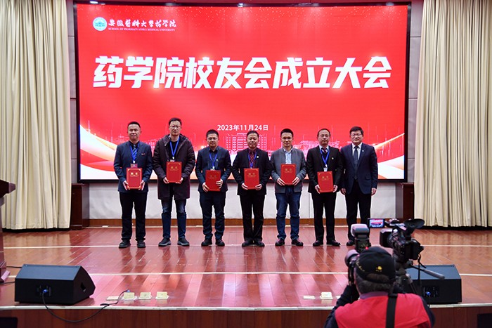 顾家山为新当选的药学院校友会会长、常务副会长、副会长颁发聘书。