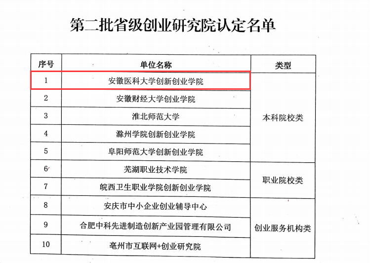 近日,安徽省人力资源和社会保障厅、省教育厅联合发文,正式公布第二批省级创业研究院认定名单,我校创新创业学院成功入选本科院校类省级创业研究院。