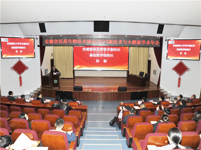 2023年12月31日,由安徽省医药生物技术协会主办,我校基础医学院、华润安徽医药有限公司和血液学临床研究分会承办的2023新技术与大健康学术年会在我校召开。学术副校长、基础医学院院长张智出席开幕式并讲话。