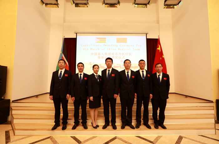 正式开始工作的第二天,医疗队就接到电话,说在南苏丹的中资企业有8人感染新冠病毒。听闻这一消息,作为医疗队队长,丁振当机立断,立刻带领医疗队内仰杰、朱志军、江世俊3名党员队员赶往该企业,为8名感染者实施救治。经过长达半个月的救治,8名感染者终于痊愈,恢复健康。