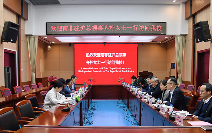 3月26日,南非驻沪总领事齐朴(Tsipa Phuti Joyce)、南非驻沪总领馆政治领事朱梦芳(Nomfundo Zulu)和贸易信息官李骥华(Chris Lee)一行访问我校。校党委书记顾家山亲切会见来宾,副校长余永强主持交流座谈会。