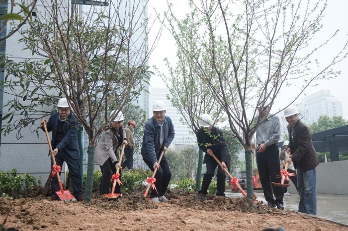 实地查看该院新院区建设情况后,余永强代表校党委、行政,向建设工作人员及一线工程建设者致以亲切的慰问,对他们的辛苦付出表示感谢,对项目进展给予了高度肯定。绵绵春雨中,他和该院新院区建设指挥部成员一起,共同种下了桂树、桃树、枇杷等树苗,并希望附属口腔医院新院区像树苗一样茁壮成长,全院职工要从工作中汲取营养,向下扎根、向上生长,向阳而生,撑起一片绿荫,守正创新,勇毅前行,共同为新院区高质量发展描绘美丽画卷。