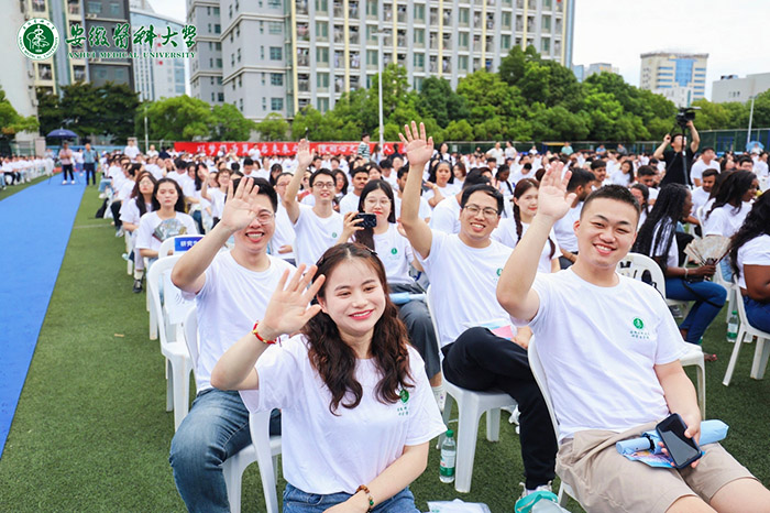 “同学们,请转头看看你们周围的同学、朋友,他们都是你们医学之路上坚实的伙伴,而在安医一起奋斗的日子会是你们宝贵的回忆。”夏强表示,很庆幸在安医遇上了相守一生的爱人和一群志同道合的朋友,他也希望学弟学妹们在毕业后仍能携手并进,于成功之际互享喜悦,于迷茫之际互相勉励,于困难之际守望相助。