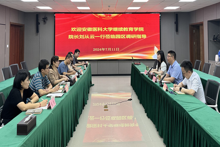 7月11日上午,继续教育学院直属党支部书记、院长刘从云带队,前往安徽继续教育网络园区、安徽开放大学调研交流。安徽继续教育网络园区管理中心主任钱丰收、副主任万赛罗接待调研组一行。