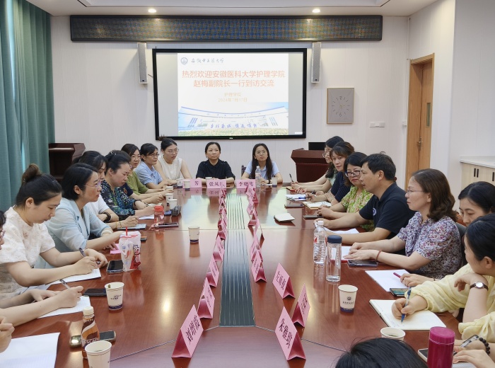 7月17日下午,护理学院副院长赵梅一行前往安徽中医药大学护理学院,就本科教育教学审核评估工作进行考察交流。安徽中医药大学护理学院院长颜贵明、副院长张传英出席交流会。