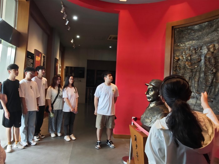 探寻红色足迹,缅怀革命先烈。来安县有着丰富的红色资源,实践团前往半塔镇参观皖东烈士陵园,集体敬献花篮,默哀悼念,缅怀伟大的革命烈士。在工作人员的带领下,成员们深入了解了皖东军民的抗战历史和罗炳辉等英雄的英勇事迹,参观了新四军二师烈士纪念林、半塔镇军事博览园,重温了那段深刻难忘的红色历史,也“沉浸式”上了一堂生动的爱国主义教育课。来安县半塔镇文化站站长王祖道给队员们讲述了半塔镇的红色故事,当地的红色歌曲也让实践团感受到了红色文化的“生命力”与“温度”。在当地工作人员引导下,团队还前往来安县博物馆参观学习,感受来安县的历史变迁。