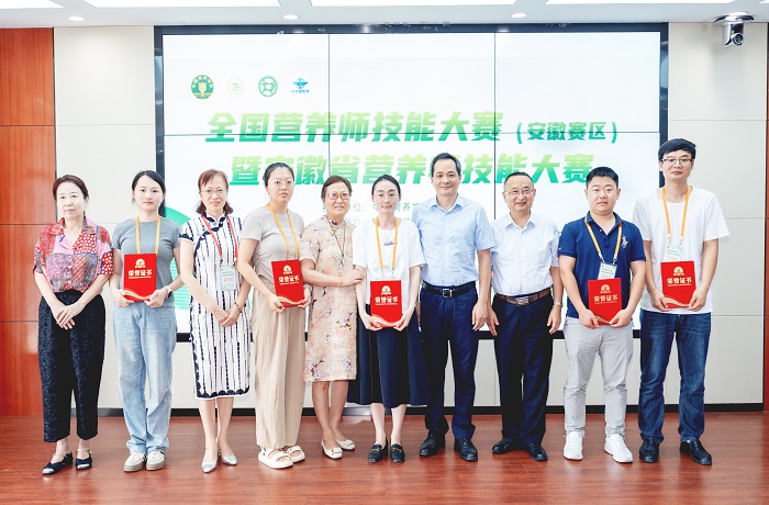 赛后,安徽省营养学会理事长胡传来对本次大赛进行总结,公共卫生学院党委书记马军成和安徽省营养学会领导共同为选手颁奖。