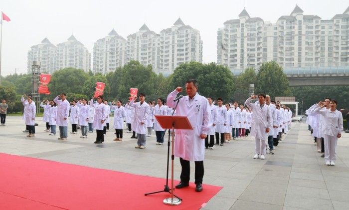 “我将把我的一生,奉献给伟大的人道主义事业,坚持人民至上、生命至上,弘扬悬壶济世、救死扶伤的职业精神,全心全意为患者健康服务……”在副院长赵卉的带领下,全体新入职医生、护士郑重宣誓,坚定医者理想与信念。