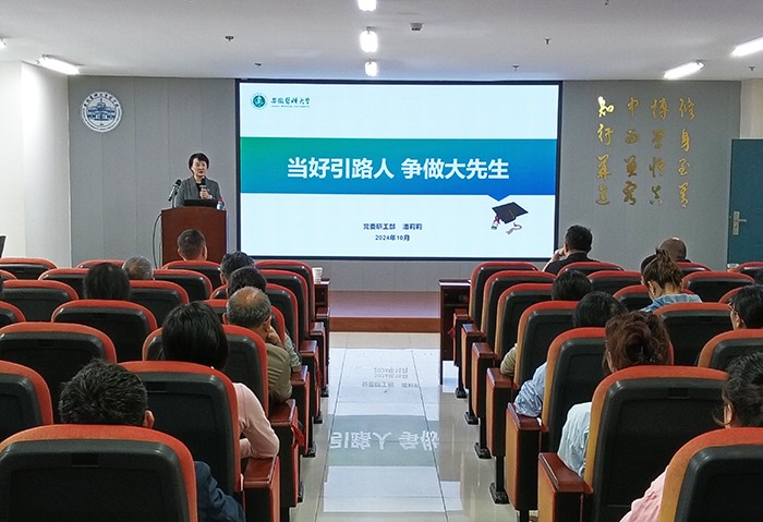 潘莉莉从学校研究生教育管理概况入手,结合我校研究生各项大数据,详细阐释了如何培养德智体美劳全面发展的研究生,并重点就严格落实导师第一责任作了系统阐述。她表示,研究生导师是研究生教育管理的第一责任人,是研究生学术道路、价值观塑造的重要引路人,必须要遵循研究生教育规律,创新研究生指导方式,注重在培养过程中采用严管与厚爱相结合的方式,构建和谐导学关系,不断提升个人的教书育人能力和研究生指导能力,以促进我校研究生教育高质量发展。