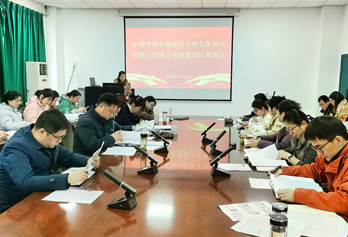 2月21日上午,护理学院党委召开2024年度党支部书记抓基层党建工作述职评议考核会,学院党委书记薛磊主持会议。