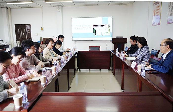 4月3日下午,省教科文卫体工会副主席黄冰玉一行来我校,就教职工心理健康服务工作展开深入调研,围绕如何建设职工心理健康服务平台、组建专兼职职工心理健康服务队伍、开展职工心理健康宣传教育以及强化心理健康服务指导等进行细致交流。校工会主席李群、精神卫生与心理科学学院院长朱春燕等全程陪同调研。