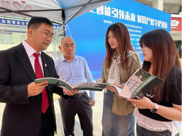 在南校区活动现场,来自合肥市中级人民法院合肥知识产权法庭的3名法官,以及法学院知识产权系师生,向广大师生发放宣传材料,传播知识产权文化理念,普及知识产权知识,倡导尊重知识产权、保护知识产权的意识,并解答有关知识产权法律咨询,引起广大师生对人工智能时代知识产权创新、运用与保护的热议,增强了大家对知识产权重要性和知识产权强国建设紧迫性的认识和理解。