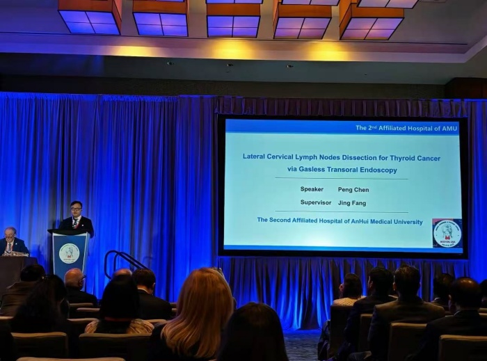 7月9日至12日,2025年世界甲状腺癌大会(World Congress on Thyroid Cancer,WCTC)在美国波士顿举办,我校第二附属医院甲状腺外科医生陈朋在会上介绍的“免充气经口腔镜侧颈淋巴结清扫术”手术视频,从全球66个国家提交的百余项手术视频中脱颖而出,入围大会演讲,并最终斩获大会“最佳手术视频奖”。